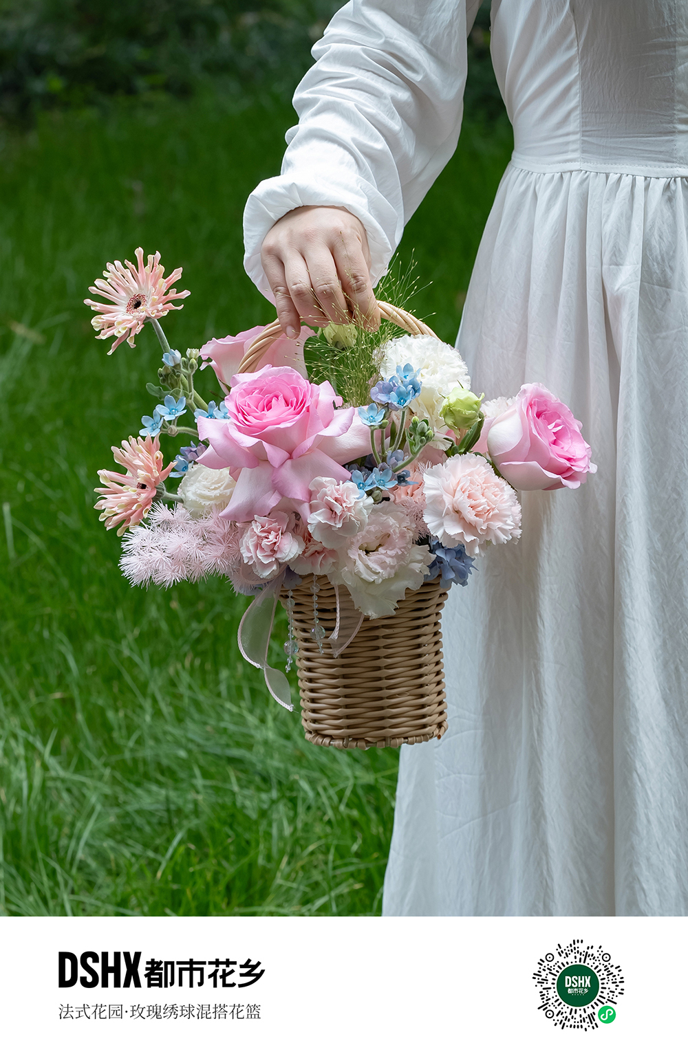 玫瑰多頭玫混搭花籃